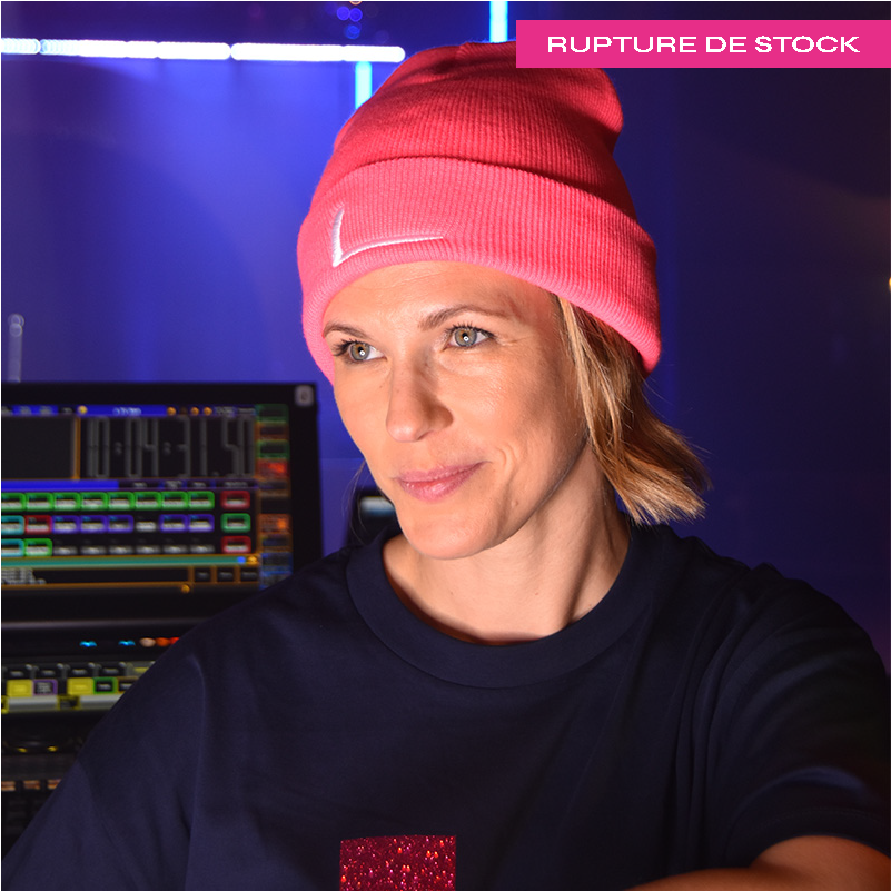 Bonnet rose fluo tricoté pour avoir chaud cet hiver.