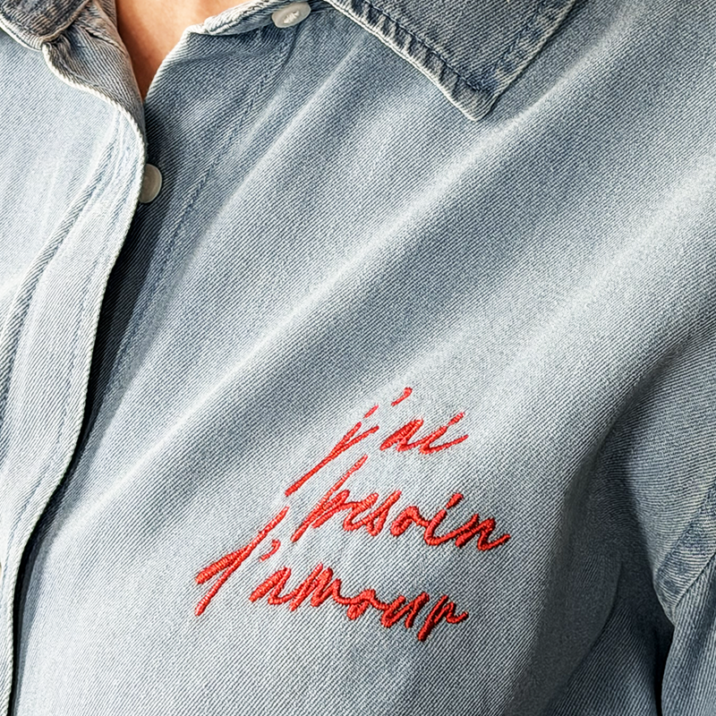 Chemise en jeans 100 % coton, effet délavé, coupe droite.