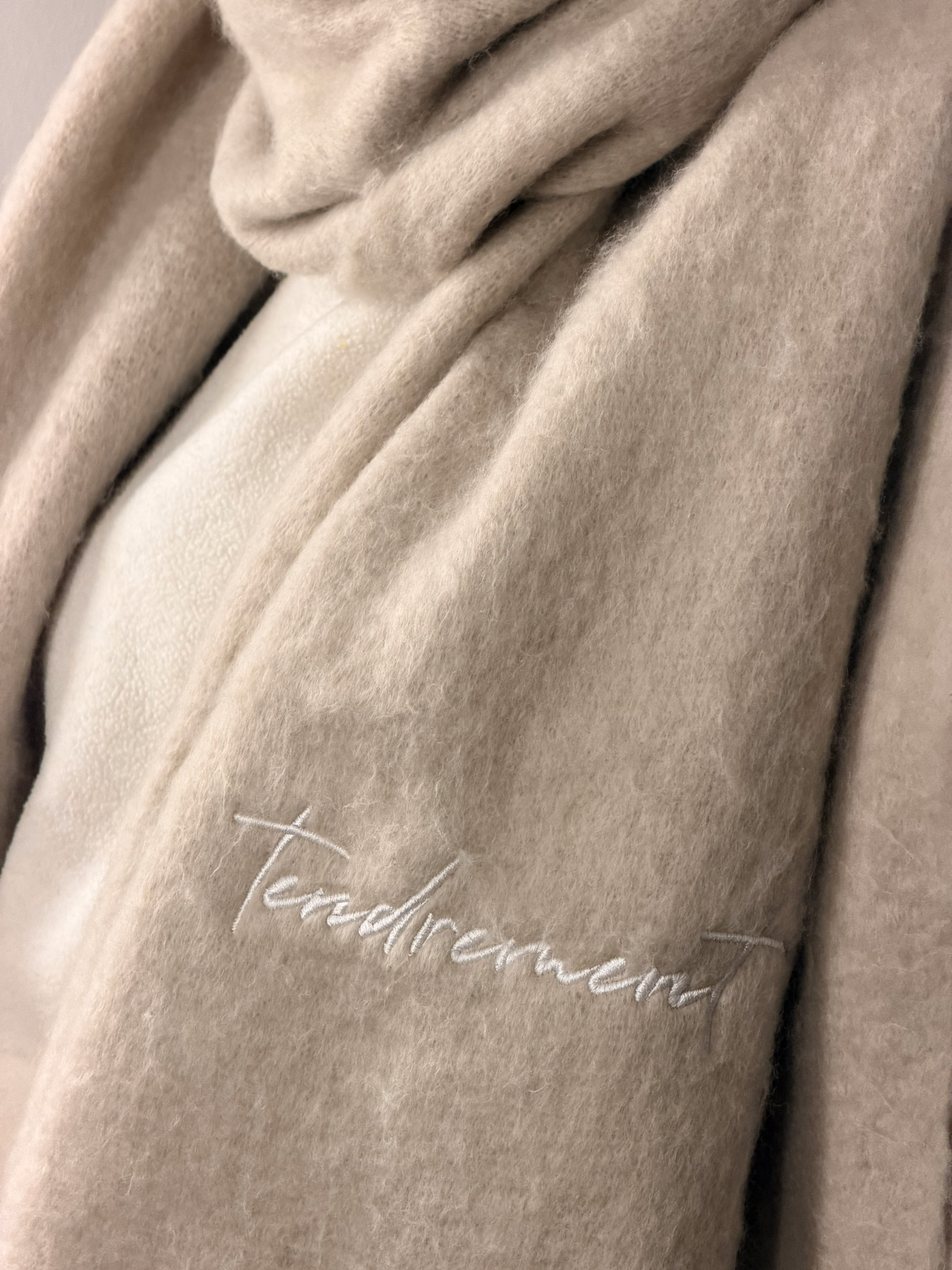 Très grande écharpe oversize écrue, elle assure chaleur et finition agréable. Bordée de franges, c’est une écharpe d’hiver douce et intemporelle qui allie style, chaleur et polyvalence au quotidien.