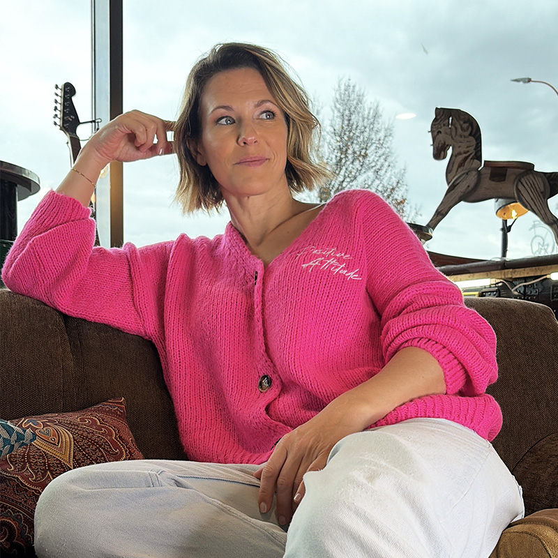 Magnifique gilet tricoté et fabriqué en Italie, rose fluo, taille unique, coupe loose.
