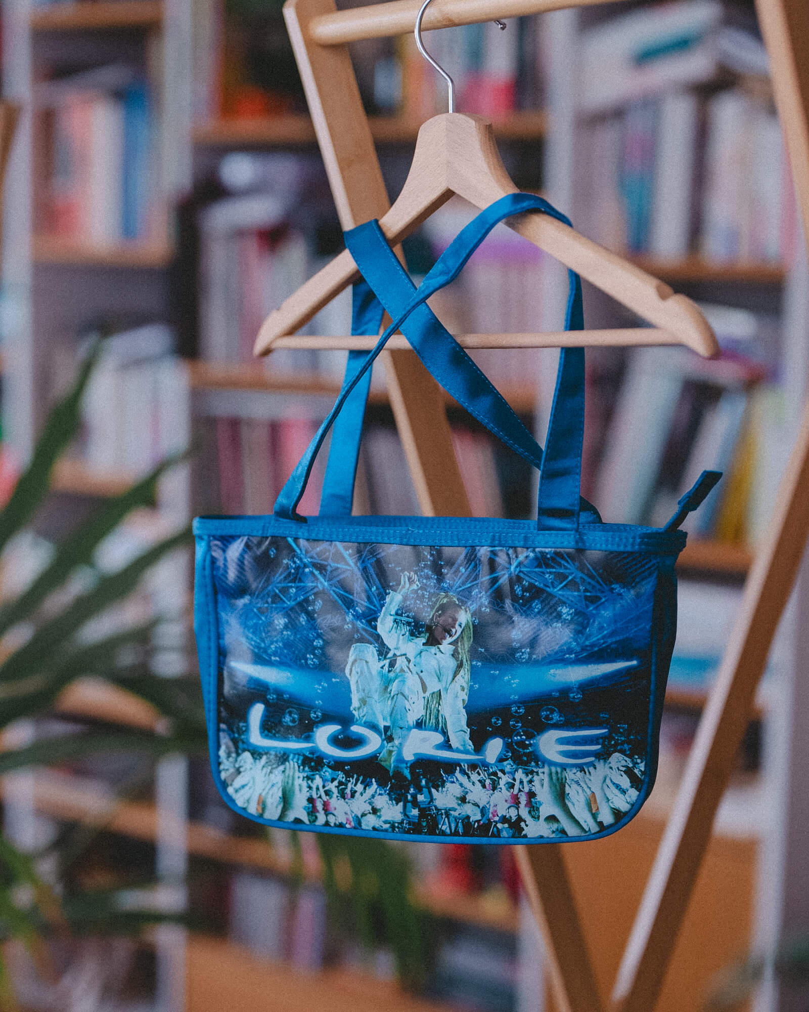 Joli petit sac bleu avec une photo du week-end tour. Doté de multiples pochettes internes, dont certaines sont équipées de fermetures éclair.