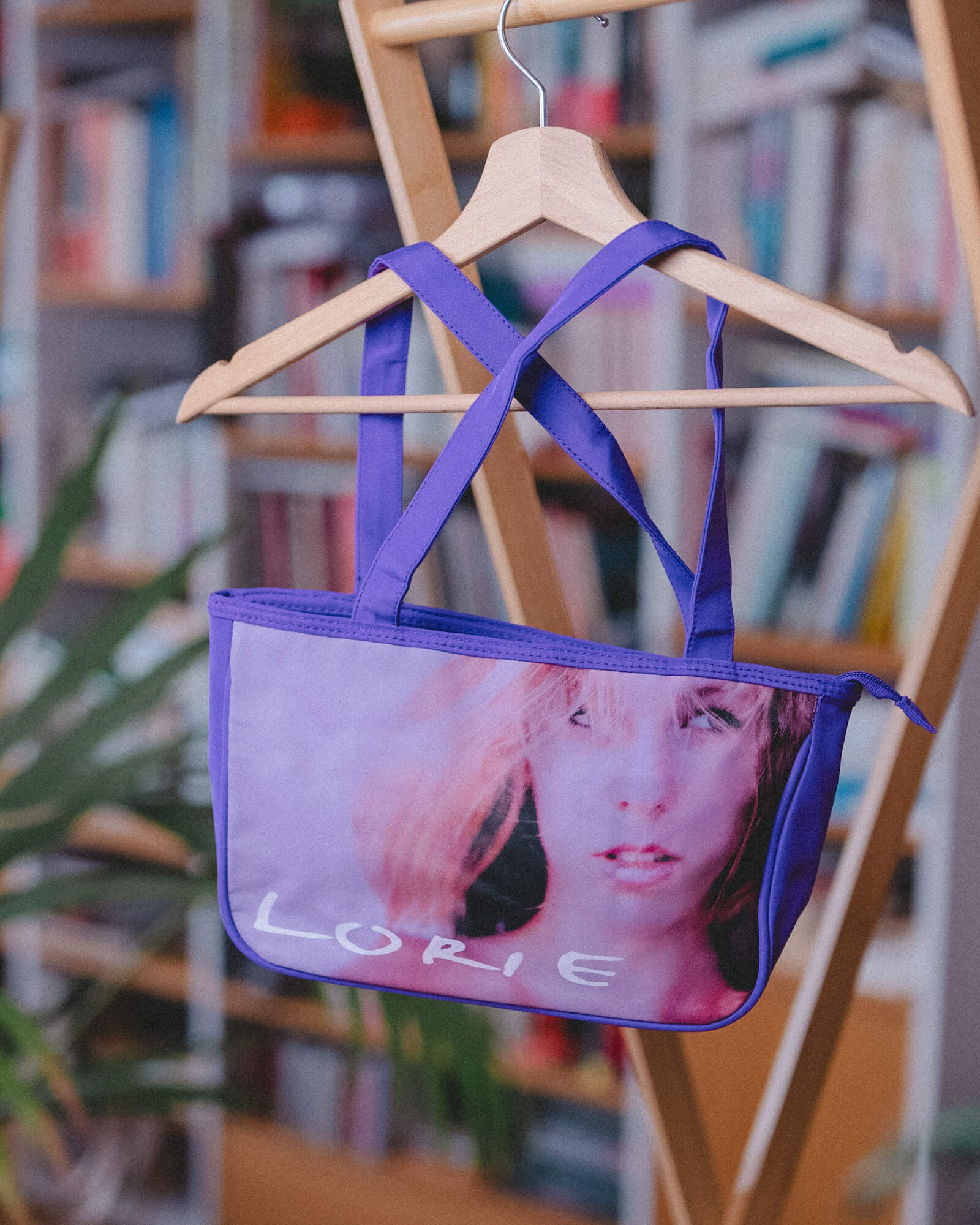 Joli sac violet avec une photo portrait de Lorie. Doté de multiples pochettes internes, dont certaines sont équipées de fermetures éclair.