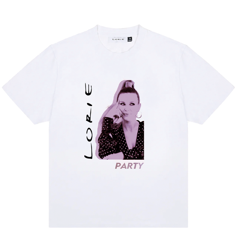T-shirt blanc coupe droite mixte 100% coton, avec les dates de la tournée 2025-2026 (taille grand).